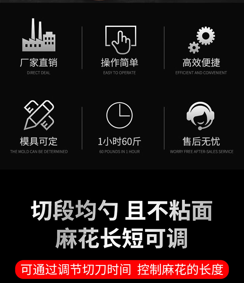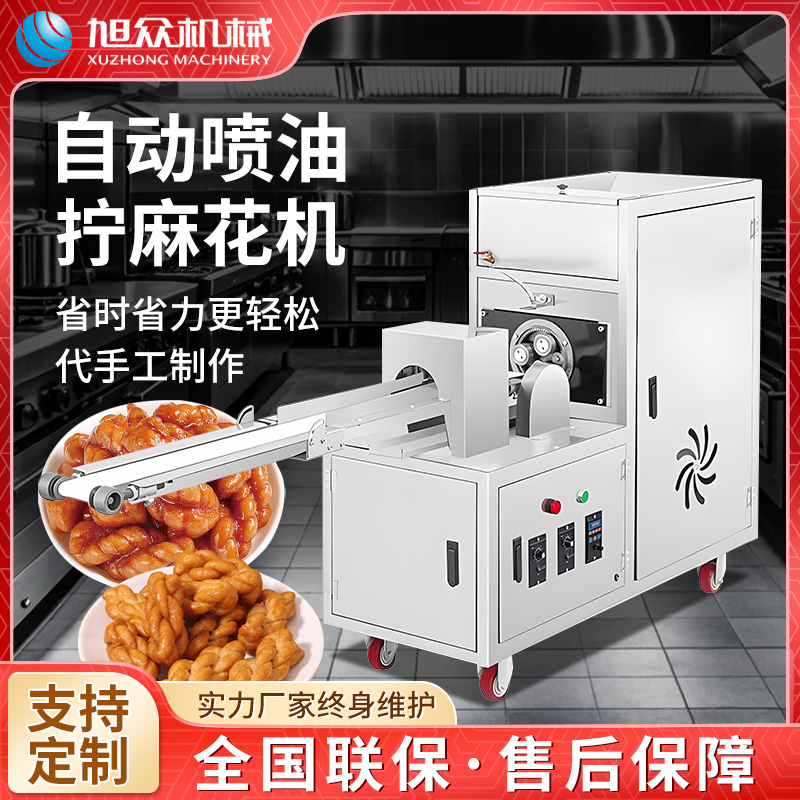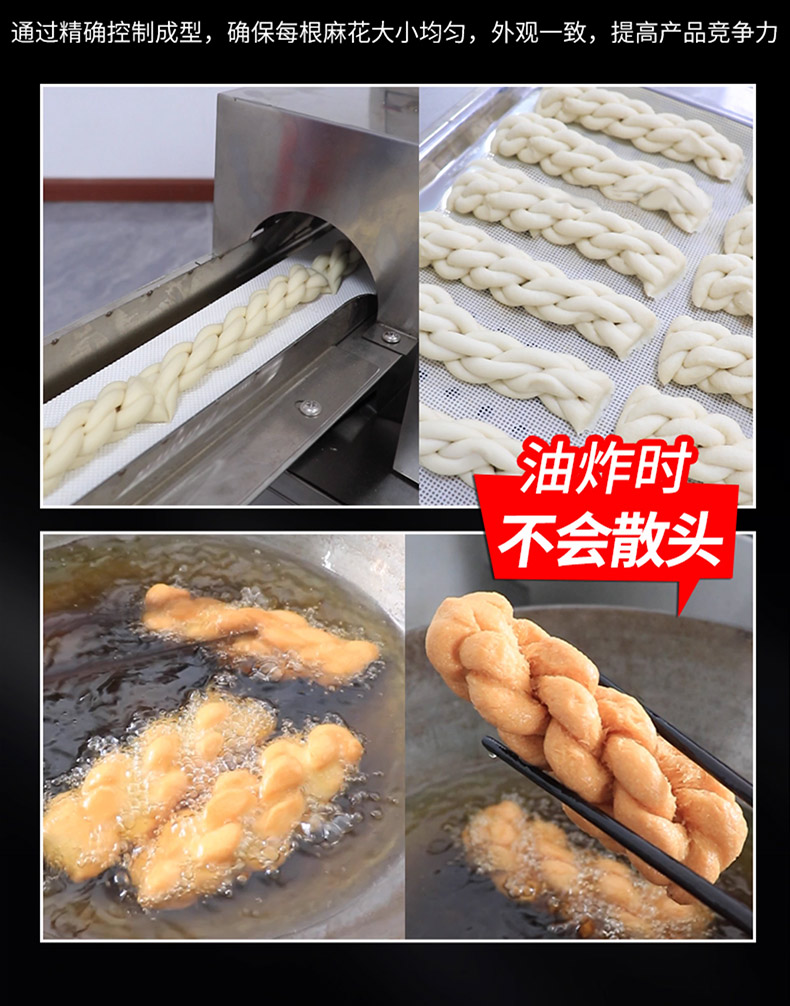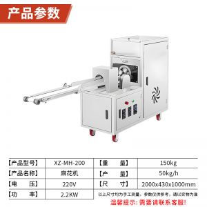 xz-mh-200麻花机,凯发棋牌娱乐的技术支持、赠送配方、支持定制,1小时加工60斤麻花。切段均勺、且不粘面,麻花长短可调。可通过调节切刀时间、控制麻花的长度。通过精确控制成型,确保每根麻花大小均匀,外观一致,提高产品竞争力。